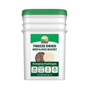 The most essential and highly sought after food source for survival is protein from meat. Our Freeze-dried Beef & Rice Bucket contains pure, USDA inspected beef with additional parboiled rice.