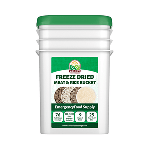 Valley Food Storage's meat and rice bucket is the perfect food storage solution for all your protein and caloric needs. Containing all of the most critical and hard-to-find proteins and densely packed high-quality rice to supplement additional calories our Meat & Rice bucket will become a staple in your food storage.