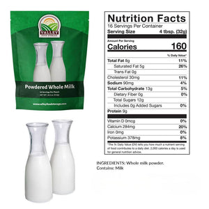 Valley Food Storage Freeze Dried Whole Milk offers a rich, creamy taste and is an essential addition to your emergency food storage. Packed with high-quality calories, our whole milk is perfect for starting your day with the nutrition you need.