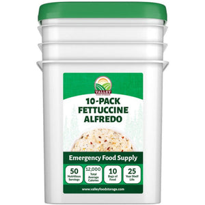 Valley Food Storage Fettuccine Alfredo features a thick, creamy white sauce with egg noodles that will give you that “old-world Italian feeling" making it perfect for a quick and convenient lunch or dinner for the whole family. Each pouch of fettuccine alfredo contains 5 servings.