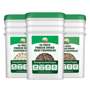 Fuel your body and stay strong with the Protein Powerhouse Bundle from Valley Food Storage. This bundle is packed with 10 servings each of Chicken Crumbles, Beef Crumbles, and Sausage Crumbles—the perfect way to ensure you’re getting the essential protein you need in times of uncertainty.